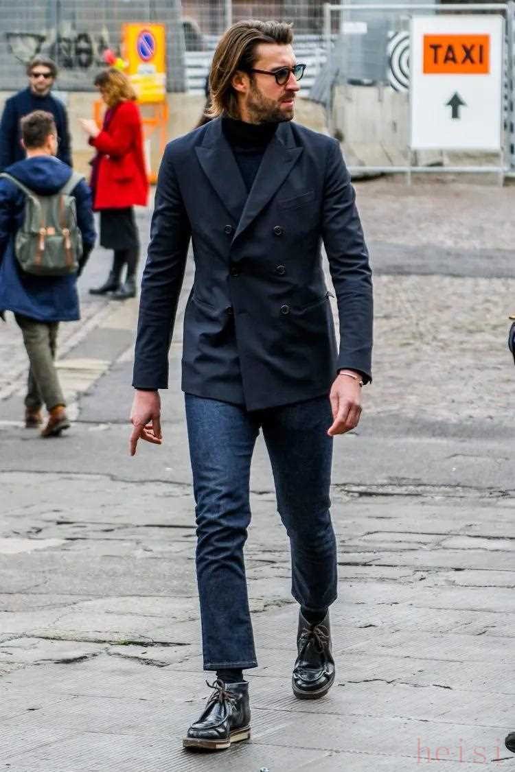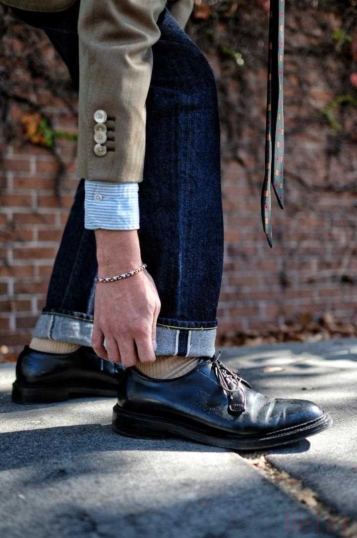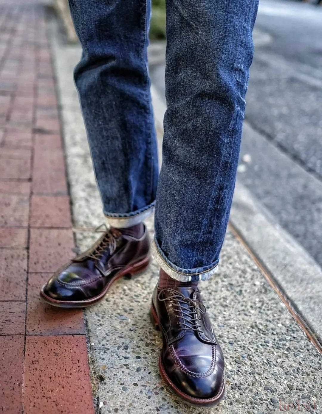 特別是一些光面皮鞋,通透的鞋面皮革光澤與牛仔褲的毛絨質(zhì)地互相配合,忽然腳下整體的色澤觀感就變得精致靚麗了起來,深邃又飽滿,表現(xiàn)出一種優(yōu)雅休閑的感受,讓人著迷。
