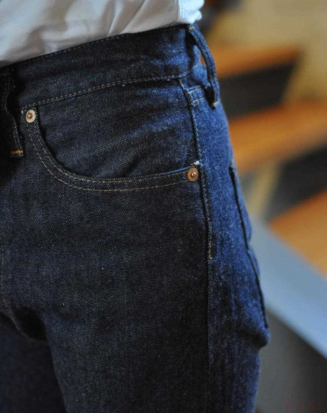 在縫紉完成之前,褲子還要經(jīng)過“防縮”的處理,以及“燒毛”工藝加工,這是一種美國 60 年代的牛仔褲工藝,經(jīng)過加工之后,質(zhì)地表面會有毛絨的質(zhì)感,而久穿經(jīng)過不同程度磨損過后,其顯現(xiàn)出來的色落美感也渾然不同,獨具一格。