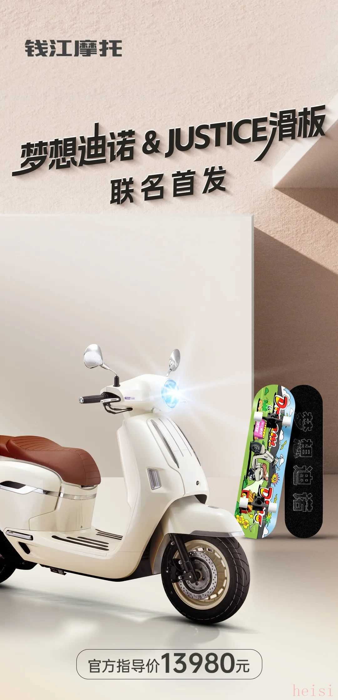 錢江低調(diào)發(fā)布新款復古踏板迪諾150,并且這一次還和滑板品牌JUSTICE聯(lián)名推出,其售價為13,980元。其實迪諾150在動力和配置上的表現(xiàn)基本和QJMOTOR產(chǎn)品基本相同,盡管13,980元的價格看著不低但配置也非常頂。