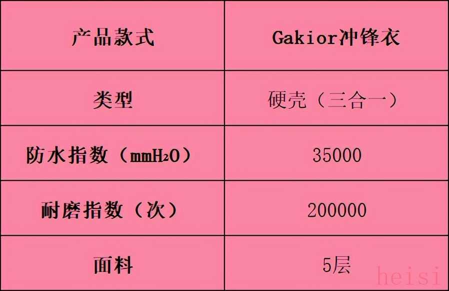 Gakior的這款是獲得權(quán)威機(jī)構(gòu)認(rèn)證專為極寒暴雨極限探險(xiǎn)設(shè)計(jì)的沖鋒衣,達(dá)到7防無氟標(biāo)準(zhǔn)(競(jìng)品通常為3防),性能極為強(qiáng)悍。這款沖鋒衣抗磨損達(dá)20萬次,防水至35000mm暴雨級(jí),透濕超30000g/m2/24h。較同價(jià)位競(jìng)品,抗靜電強(qiáng)3倍,鎖溫升2倍,防風(fēng)提145.6%,防水增163.2%,耐磨漲238.7%。