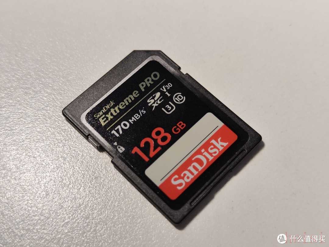 TF和SD卡一般選擇V30的存儲卡就夠用了,以閃迪SD卡128G V30卡為例,讀寫速度為200MB/秒,寫入速度為90MB/秒,可以滿足一般4K視頻的錄制,價格也相對實惠。