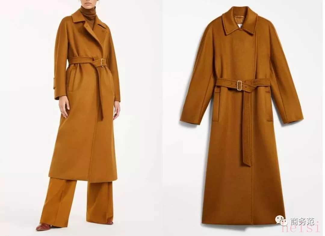 比如Max Mara這件Orietta煙草色羊絨大衣,采用紫貂化工藝,色澤醇厚高級(jí),雙層純羊絨輕薄又暖和,經(jīng)典浴袍款多少年都不會(huì)過(guò)時(shí),價(jià)格56080元。