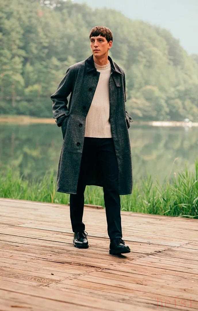 Mac Coat 簡單說,就是當(dāng)你把紐扣系齊后它只會露出最上面那粒紐扣,剩下的則采用了隱藏門襟的設(shè)計風(fēng)衣,跟另一款單排扣 Balmacaan Coat 直接將全部紐扣露出相比,很顯然 Mac Coat 夠干凈也夠了然,讓人直面風(fēng)衣的質(zhì)感和版型。