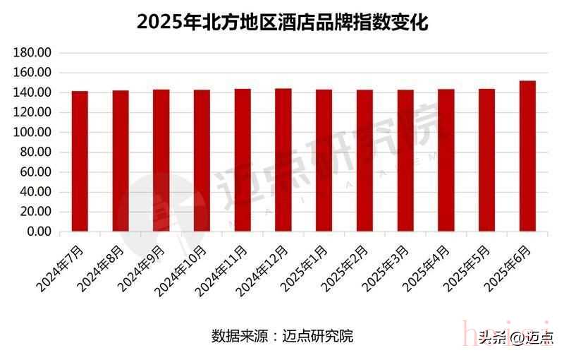 2024-2025年,北方地區(qū)酒店品牌指數(shù)呈現(xiàn)動態(tài)變化。2024年7月-2025年1月,指數(shù)小幅波動,維持在141.74-144.22區(qū)間。2025年2月-5月,指數(shù)在142.77-143.66區(qū)間震蕩,6月大幅升至152.04,夏季旅游旺季來臨、消費需求增長等因素,刺激酒店需求與品牌傳播,推動指數(shù)上揚。各階段中,酒店品牌借助市場契機,通過服務優(yōu)化、營銷推廣等手段,強化品牌影響力,保障指數(shù)運行,助力北方地區(qū)酒店品牌在市場中發(fā)展。