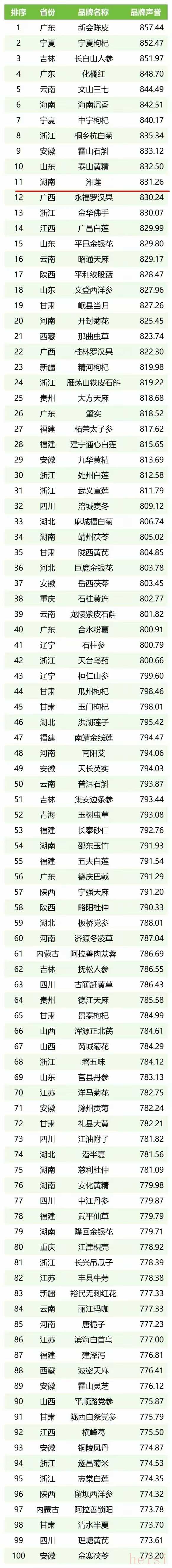 今日,2024中國地理標(biāo)志農(nóng)產(chǎn)品(中藥材)區(qū)域公用品牌聲譽(yù)TOP100發(fā)布!湘蓮位居全省第一,全國11!