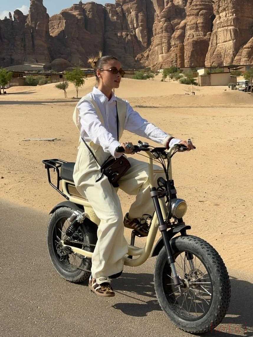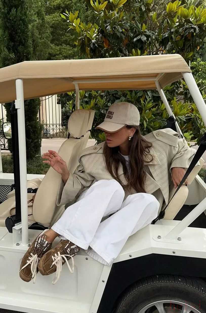 在搭這種運(yùn)動(dòng)鞋時(shí),服裝的顏色也可以與鞋履進(jìn)行呼應(yīng),像周潔瓊就用一雙ECCO山地系列戶外鞋為整體和諧的畫(huà)風(fēng)打好基礎(chǔ),還可以借助棒球帽、金色耳環(huán)等精致配飾,為造型的完成度加分。