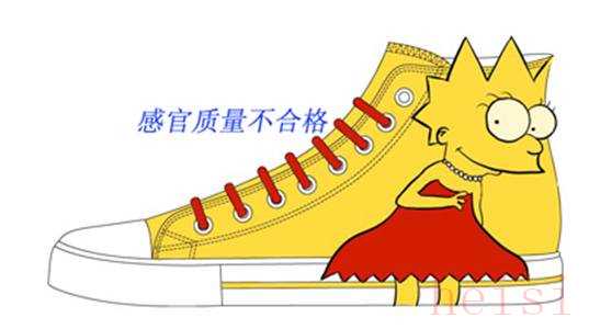 感官質(zhì)量主要指鞋的外觀質(zhì)量,是通過感官觀察和測量比較,對鞋的外觀質(zhì)量進(jìn)行判定。感官質(zhì)量缺陷包括主跟大小不一致、主跟不平、包頭軟而變形、鞋內(nèi)里破損、主跟跨塌變形、釘腳不平、鞋內(nèi)里不平服、鞋內(nèi)底不平服等。感官質(zhì)量缺陷不僅影響鞋的美觀,而且影響消費(fèi)者的穿著舒適性,甚至有些缺陷(釘腳不平)還可能對消費(fèi)者造成傷害。