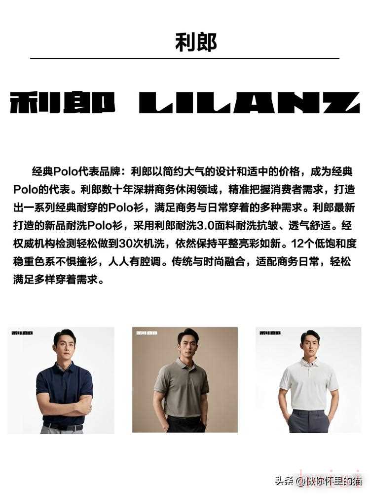 第三梯隊(duì)是“經(jīng)典牌”,主打“好穿不貴”。利郎的Polo衫我有件黑色的,穿了三年還沒變形,最近新出的耐洗3.0面料更絕——機(jī)洗30次都不起球不褪色,12個(gè)低飽和度顏色,不管是見客戶還是陪孩子玩都能搭;雅戈?duì)柕拿蘖宪浀孟竦诙悠つw,九牧王的剪裁對(duì)微胖男生特別友好,腰腹位置稍微收一點(diǎn),看著立馬精神。