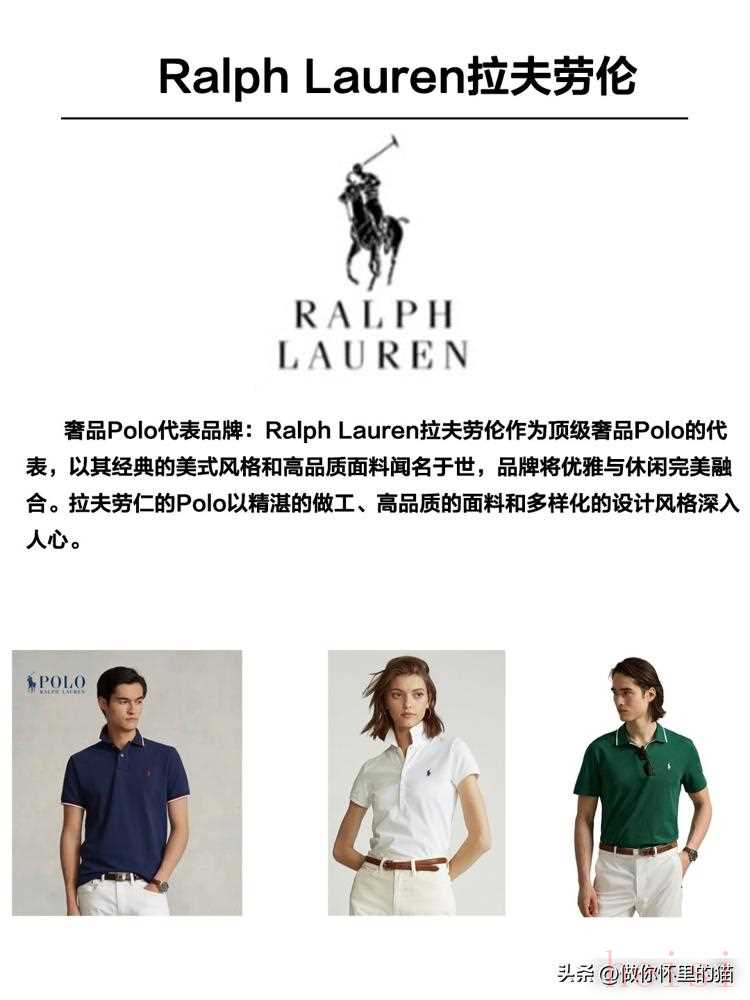 第一梯隊(duì)是“奢品牌”,適合追求質(zhì)感和腔調(diào)的人。比如Ralph Lauren拉夫勞倫,它家的Polo衫就像美式優(yōu)雅的代名詞,面料軟得像棉花糖,領(lǐng)口走線細(xì)得能數(shù)清針腳,穿上身自帶“我很講究”的氣場(chǎng)。還有杰尼亞、PRADA這些大牌,雖然價(jià)格高,但勝在設(shè)計(jì)經(jīng)典,穿個(gè)三五年都不過時(shí),特別適合重要場(chǎng)合撐場(chǎng)面。