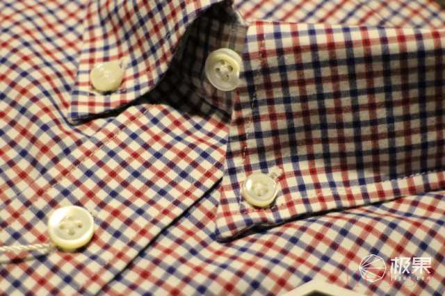 再來看看細節(jié)做工部分。領(lǐng)口部分采用了休閑襯衫常用的小扣領(lǐng),既可以顯得更加筆挺,也方便后期打理。