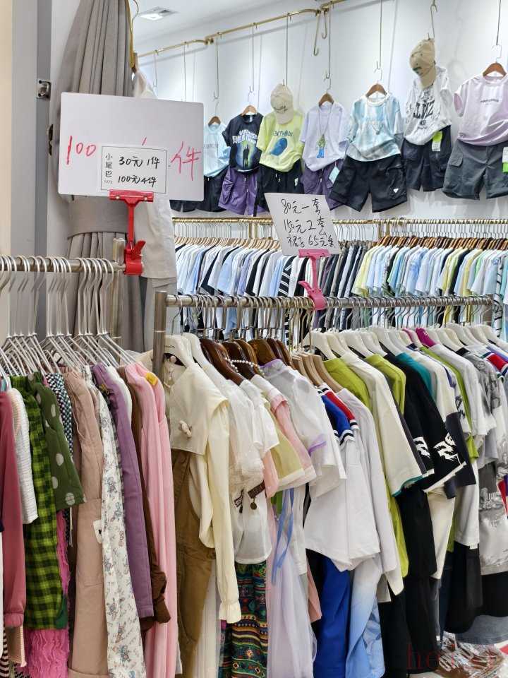 這個(gè)市場同樣在夏季清倉中,一共有4層,因?yàn)槭瞧慌氖袌?,門口一口價(jià)區(qū)域的檔口相對來說比昆龍要少一些,大童的衣服更多,價(jià)格上會貴個(gè)20%—50%左右,但衣服的品質(zhì)和設(shè)計(jì)感相對來說會更好一點(diǎn)。