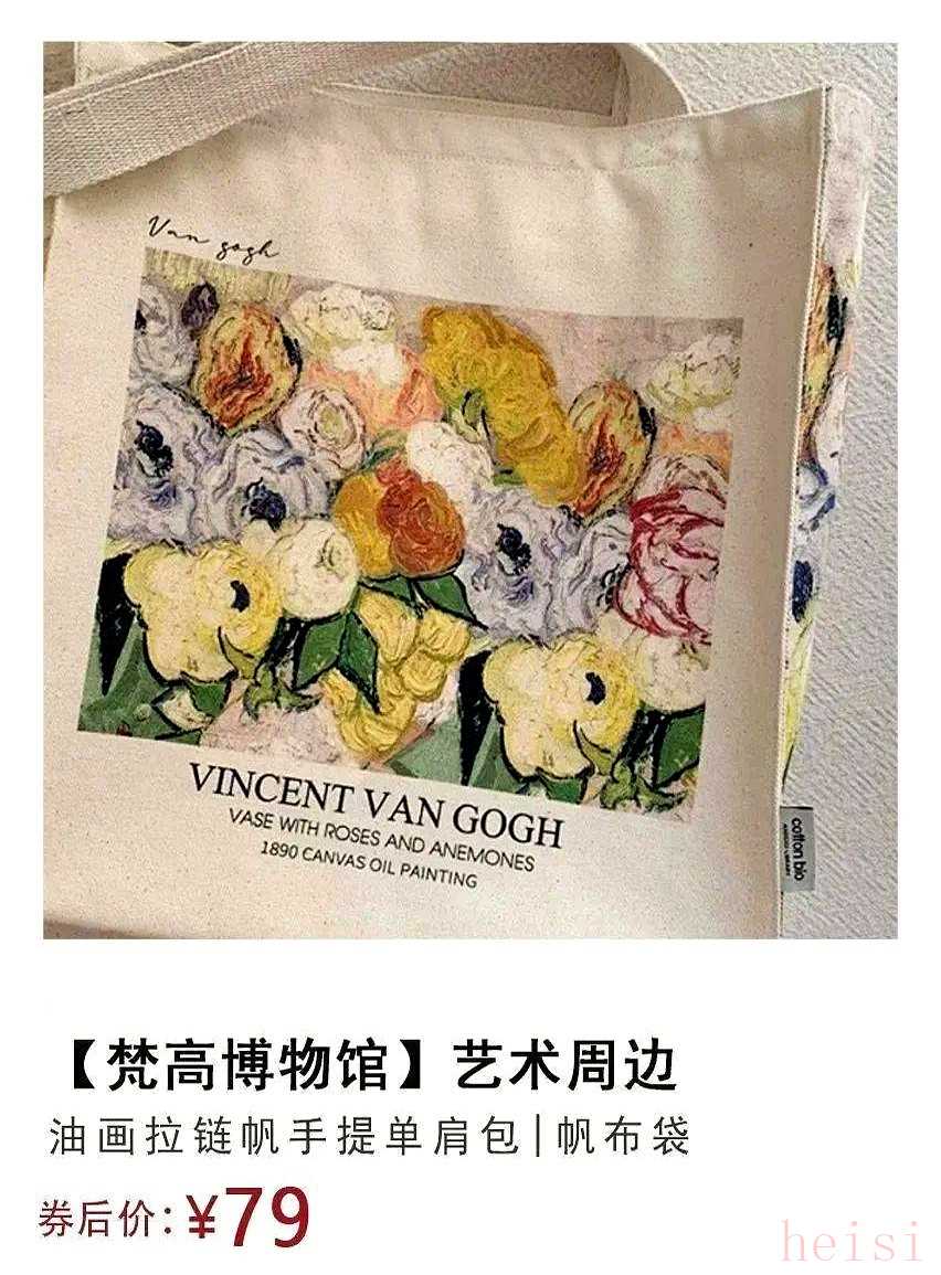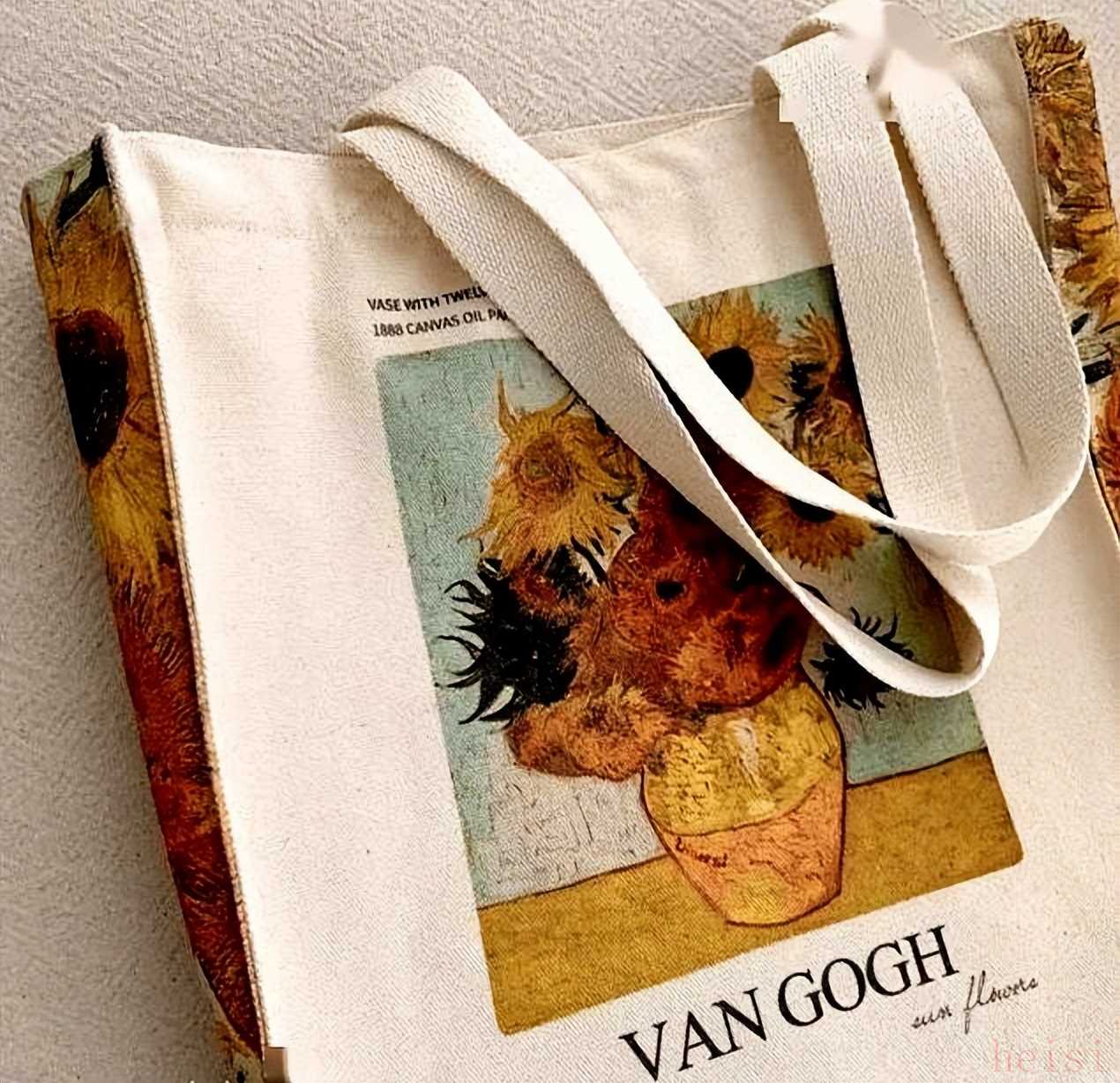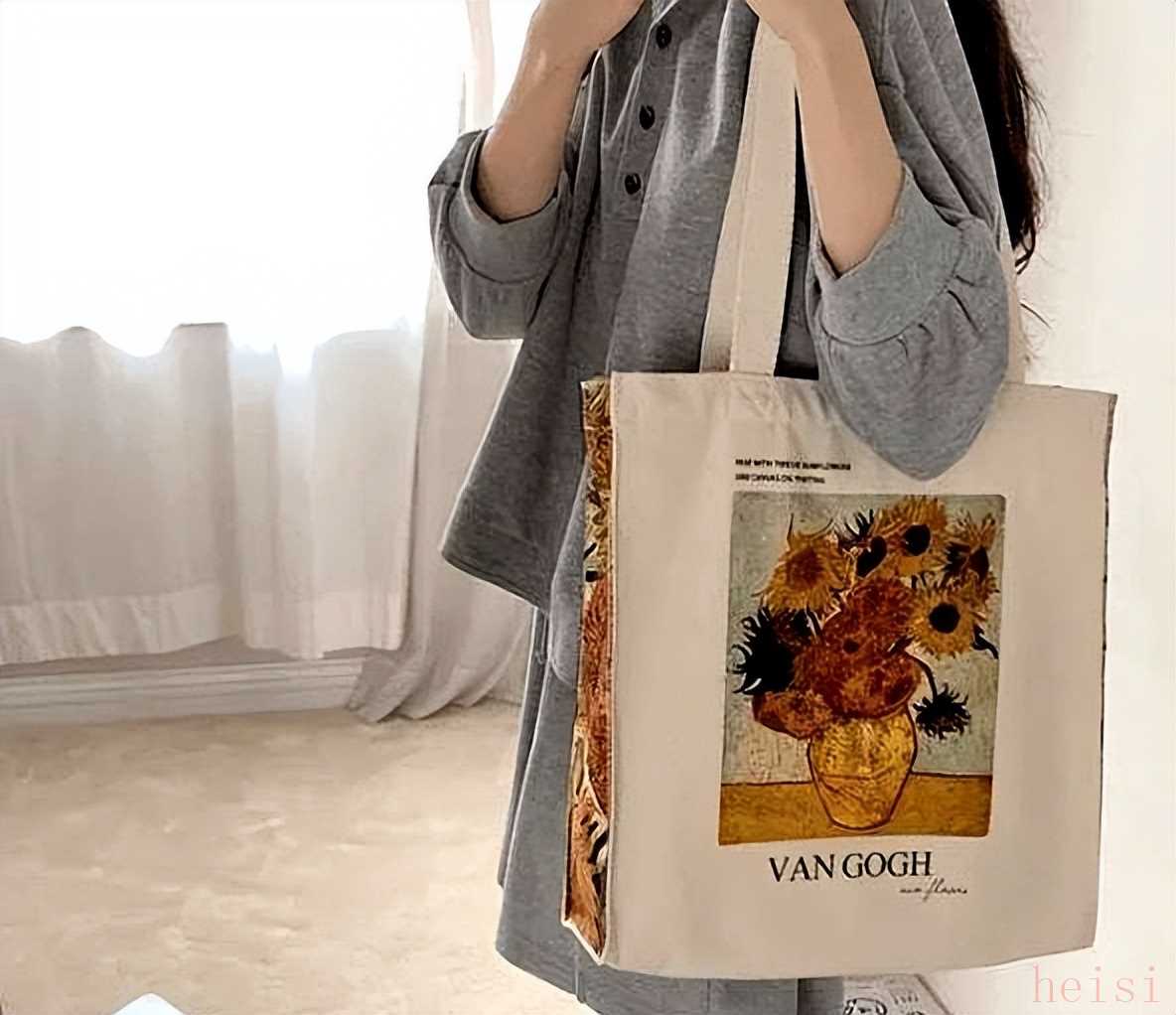 1. "梵高帆布包":采用梵高的《星夜》或《向日葵》等經(jīng)典畫作圖案,色彩鮮明,充滿藝術(shù)氣息。