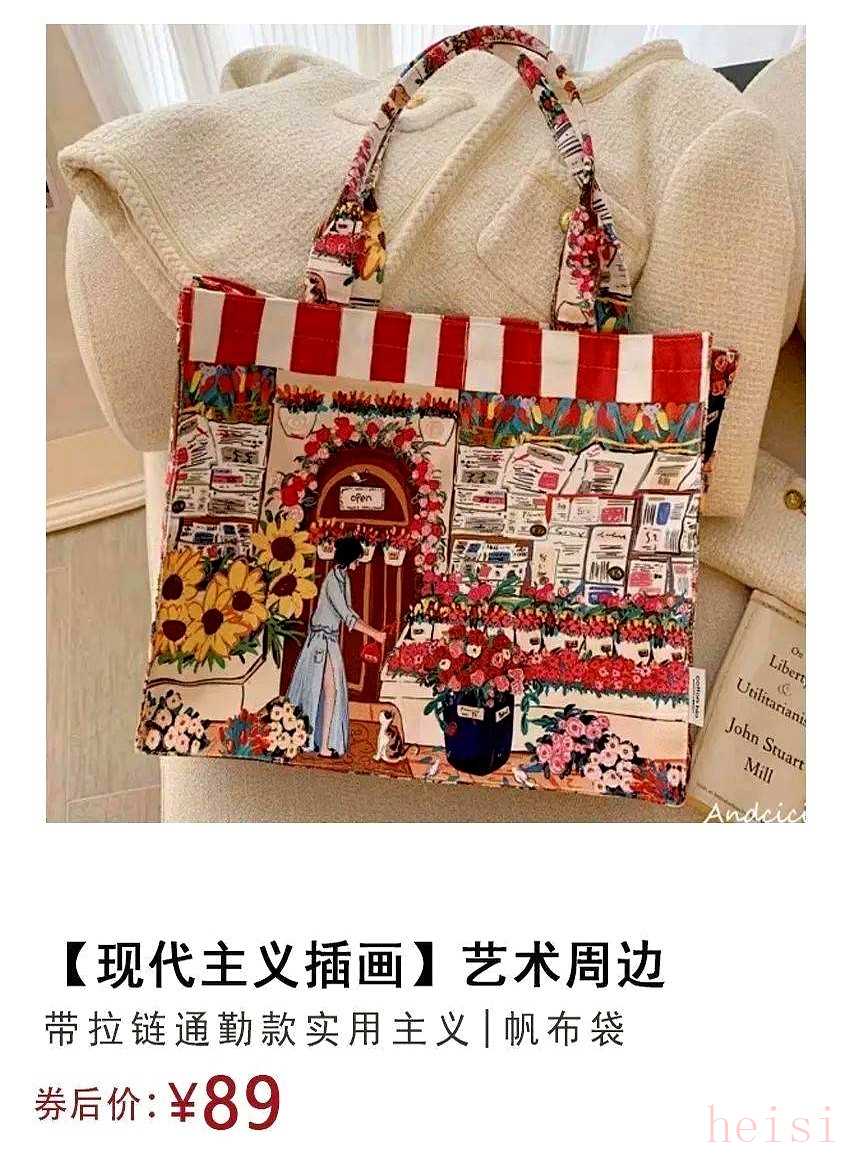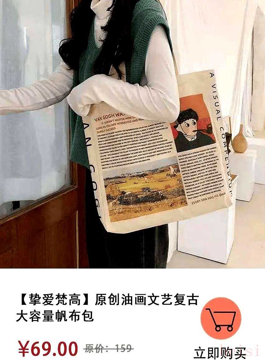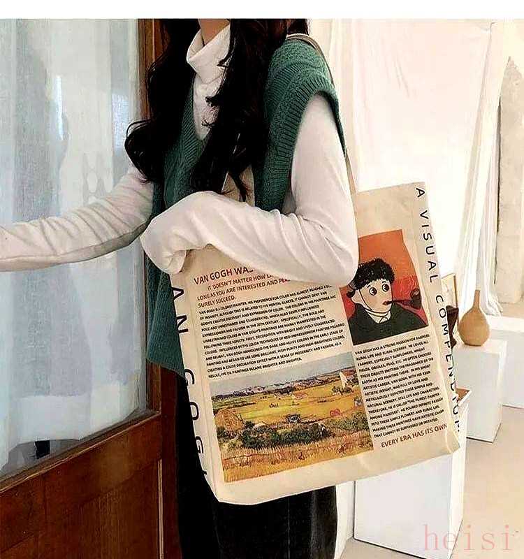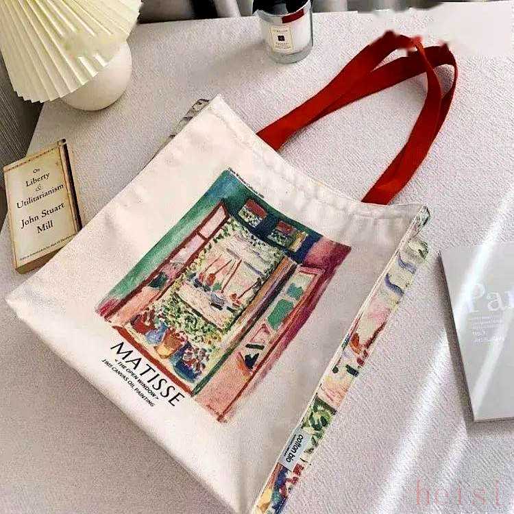 1. "梵高帆布包":采用梵高的《星夜》或《向日葵》等經(jīng)典畫作圖案,色彩鮮明,充滿藝術(shù)氣息。