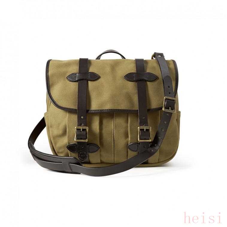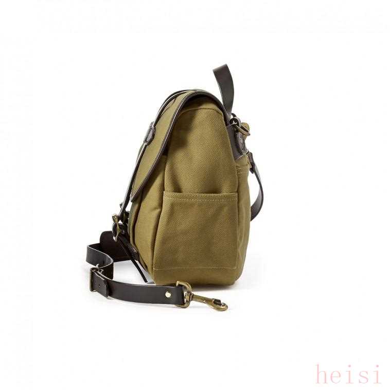 Filson工裝包的款式雖然算不上五花八門,但是該有的基本款都有,甚至還有植鞣皮手提包這樣摩登范的單品。其中多功能戶外帆布包中70232和70256是Filson明星產(chǎn)品,在國內(nèi)的受歡迎度比較高,規(guī)格上看,70232的尺寸為35cm x 27.5 x cm x 12.5 cm,把它定性為一個中等尺寸的單肩挎包非常合適。70232配有大翻蓋主袋,背面有一個與包具等長的儲物袋。232的正面有兩個通過按扣開合的風(fēng)琴褶口袋,看起來很有特色。