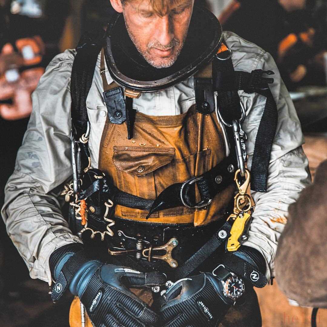說到油蠟皮,這種工藝并不是存在很久,它在19世紀才被發(fā)現(xiàn),人們從石油中提煉出油蠟,將油蠟溶解到布料中,不會讓布料變黃、變僵,又可以完美地防水、抗風(fēng)。20 世紀初期,經(jīng)常戶外作業(yè),野外探險的男人們對油蠟皮十分著迷,他們用油蠟皮制作帳篷、狩獵裝、工具包、槍套等。同時使用油蠟皮的制作品看起來有很強烈的做舊感。