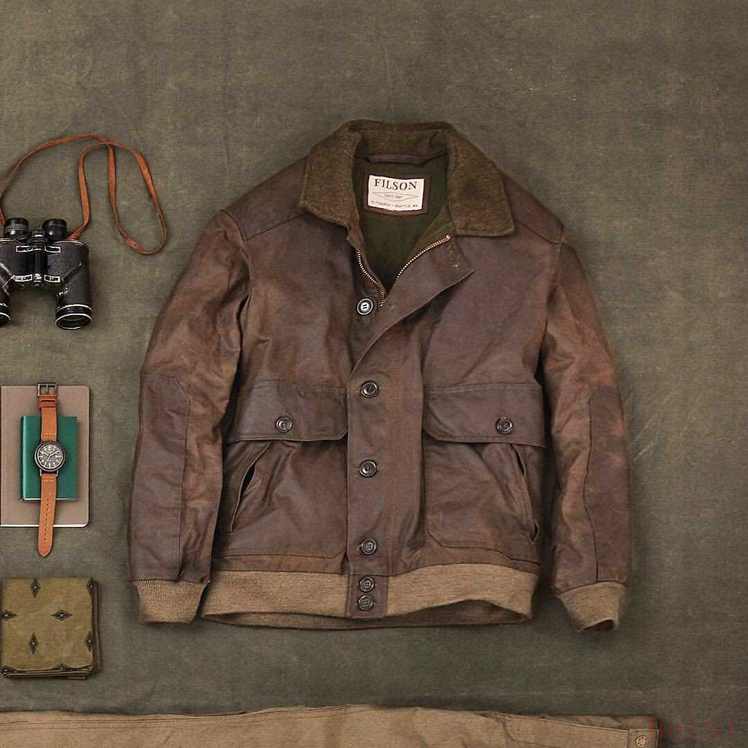 Filson的油蠟帆布夾克一般使用經(jīng)典的Trucker Jacket版型,(現(xiàn)在Levis的很多美式夾克也會每年出Trucker Jacket版型的外套),并且Filson的油蠟帆布夾克絕對不會偷工減料,從來都是整件衣服使用油蠟帆布制成,油蠟帆布扎實硬挺,在工作時雖然會有些許不舒適,但是它能夠很好的防水防磨,同時給予使用者們基礎(chǔ)的保護作用,比如被巖石刮蹭,油蠟帆布的潤滑性會使得阻力變小,而減少外表皮的擦傷。