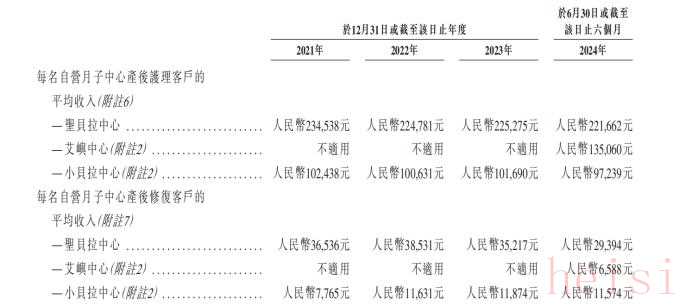 圣貝拉沒有披露具體的總客單價,但是2024年上半年,兩大品牌圣貝拉中心和小貝拉中心在產(chǎn)后護理和產(chǎn)后修復兩大業(yè)務(wù)的單客收入,均遠低于2021年數(shù)值。