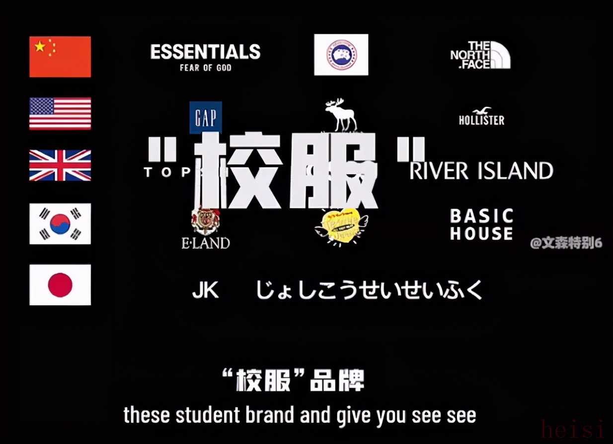 @文森特別6曾在視頻中分享了一張梗圖,名為中外各國“校服”品牌大賞。