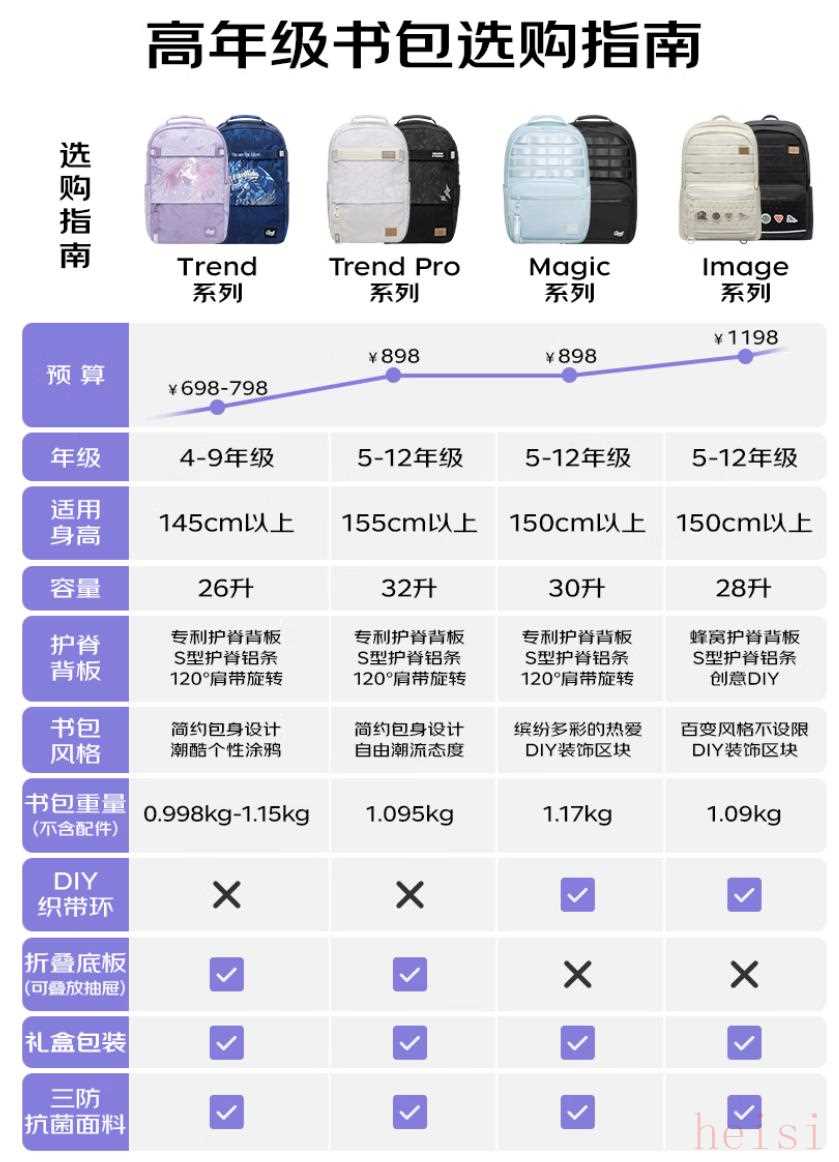 有一說一,這三款護(hù)脊書包品質(zhì)都非常好,Trend Pro系列容量最大,Magic系列性能平衡扎實(shí),Image系列顏值最高,大家也可以給孩子們看看,結(jié)合自己實(shí)際需求來選擇一款!