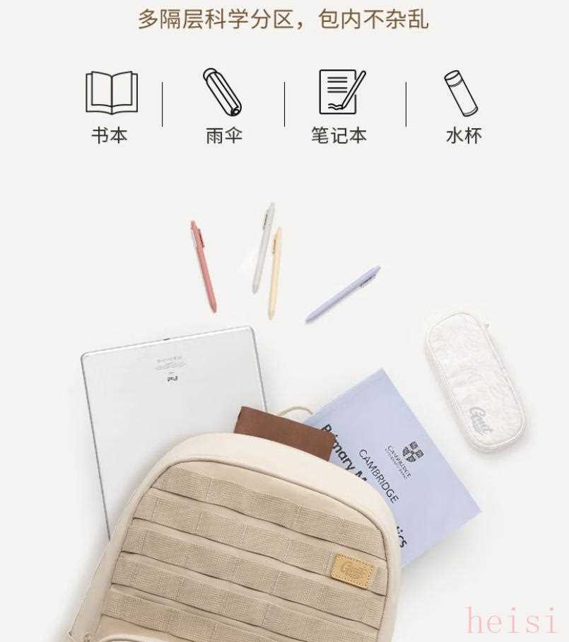 收納分區(qū):書包內(nèi)部應(yīng)有清晰的分區(qū)和隔層設(shè)計(jì),方便將書本、文具等物品分門別類放置,如主隔層可放課本和較大文件夾,側(cè)袋放水杯和雨傘,小口袋放文具等小物件,這樣能避免物品搖晃或偏重一側(cè),也便于快速找到所需物品。