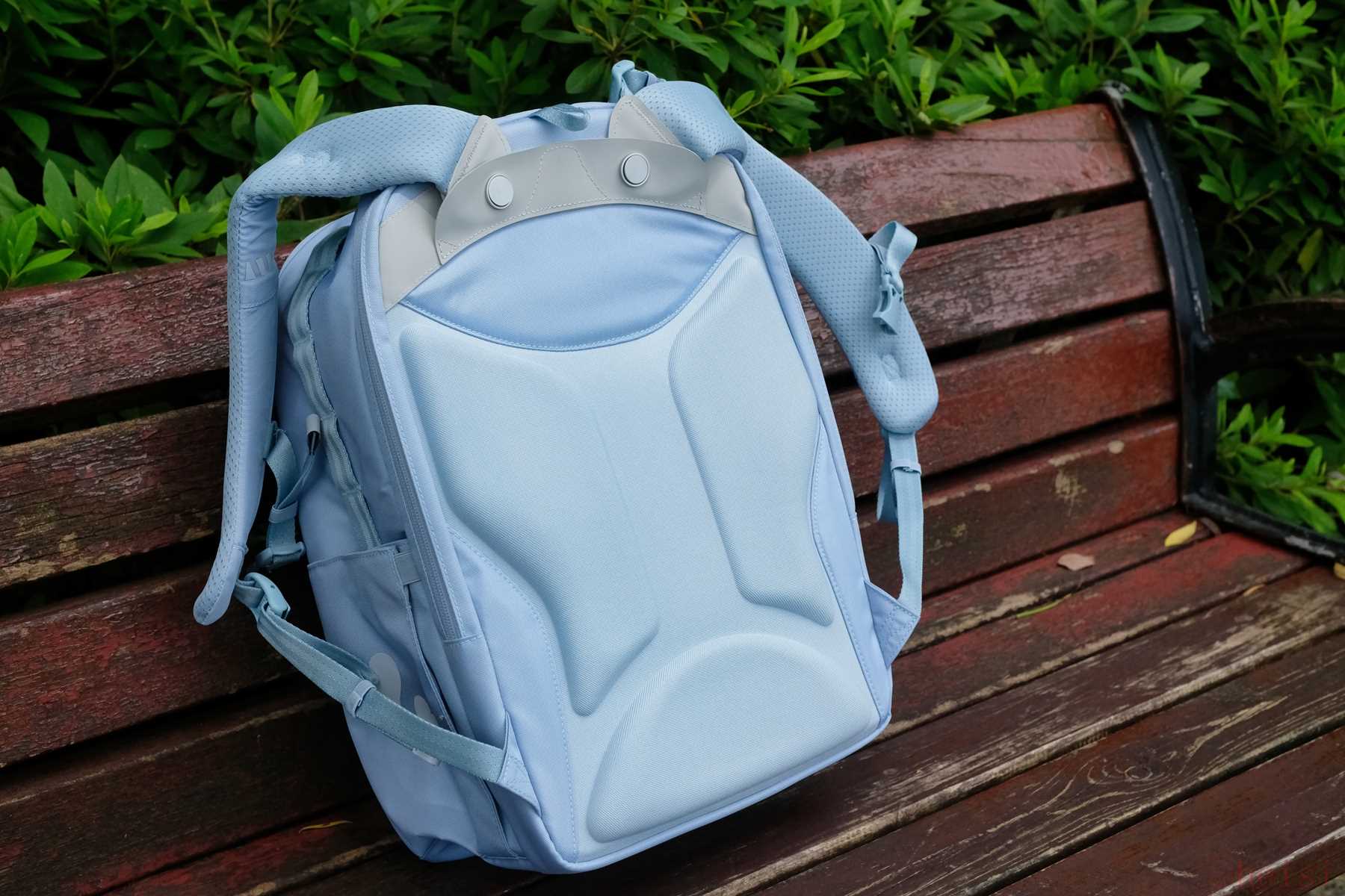 Magic護(hù)脊書包的同樣配備了一體式的專利護(hù)脊背板和S型護(hù)脊鋁條,加上120°旋轉(zhuǎn)的S型厚背帶與胸扣,不僅能更好地保護(hù)脊椎,還可以把書包重量均勻分散到整個背部,就算是背很久也不會覺得累。
