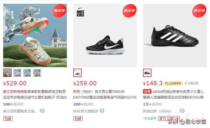 泰蘭尼斯穩(wěn)穩(wěn)鞋與耐克、阿迪童鞋售價對比,圖源京東