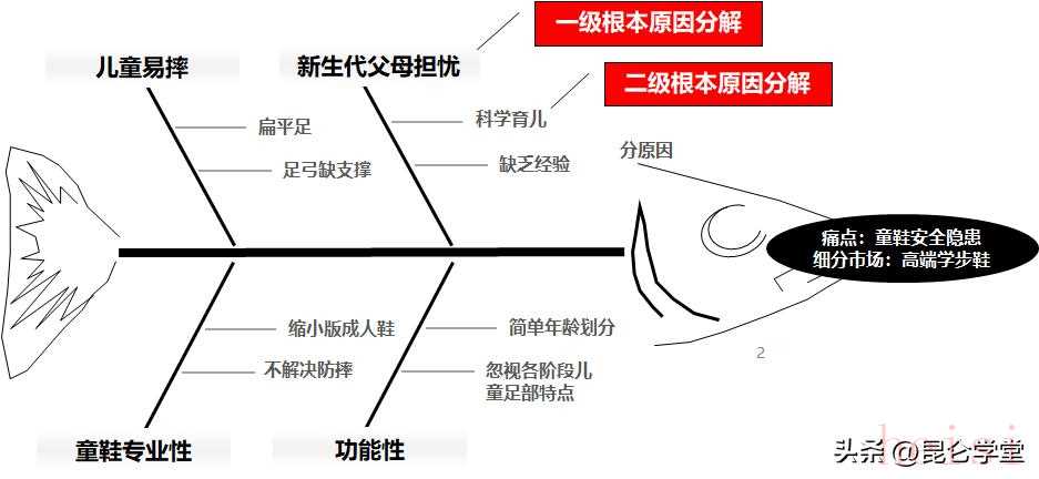 童鞋市場痛點(diǎn)分級魚骨圖,昆侖觀察制圖