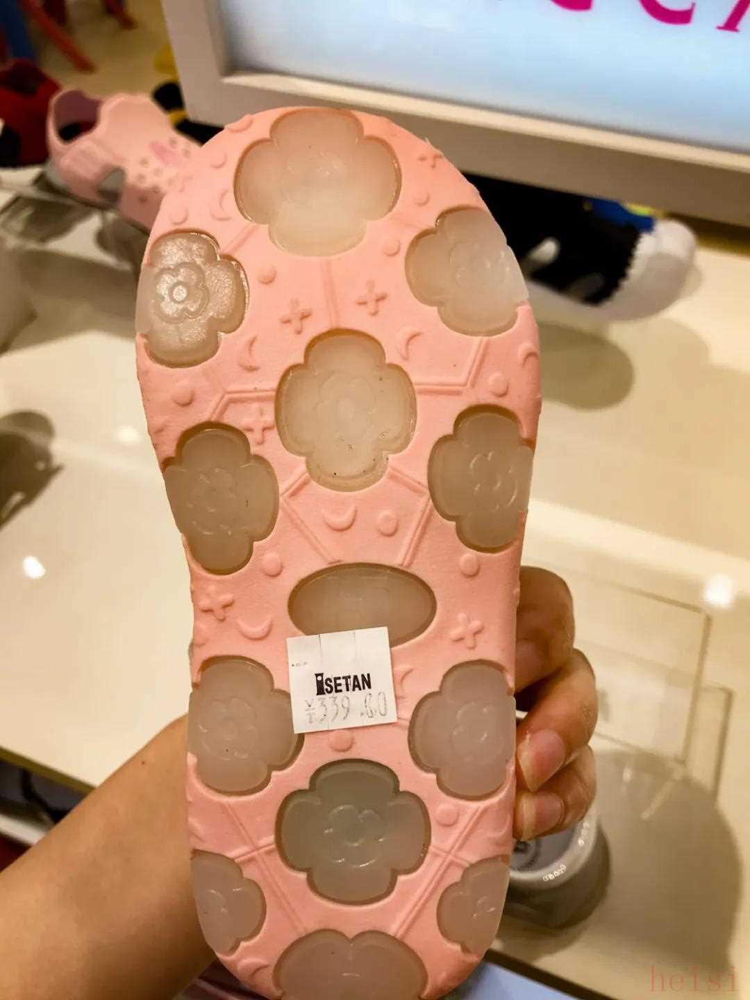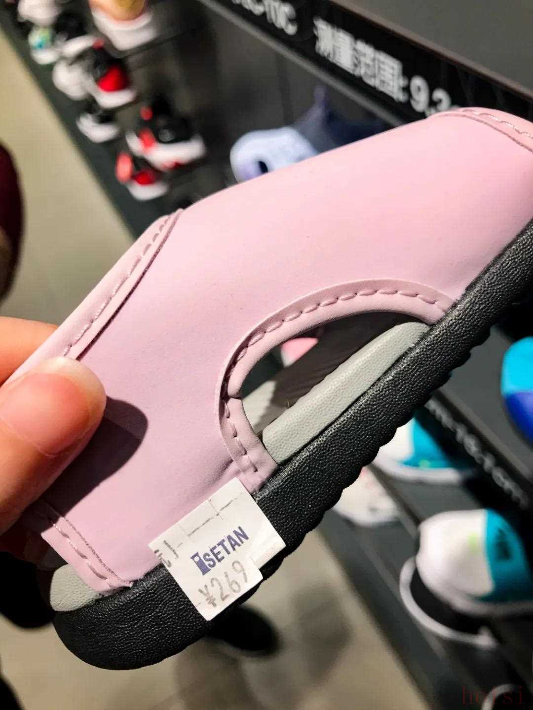 門店這款粉紫運(yùn)動(dòng)款的涼鞋還算可以,魔術(shù)貼穿脫方便,防滑花紋深且廣泛,性價(jià)比也不錯(cuò)。