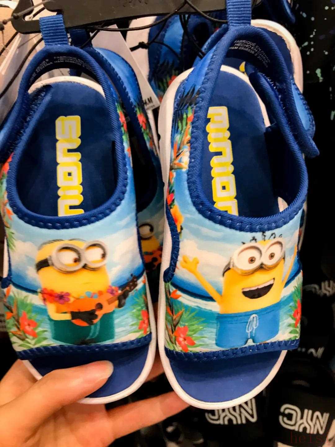 HM的兒童涼鞋因?yàn)轭佒捣贤尥迣徝溃T如恐龍、小黃人、迪士尼元素的融入,很討孩子喜歡。