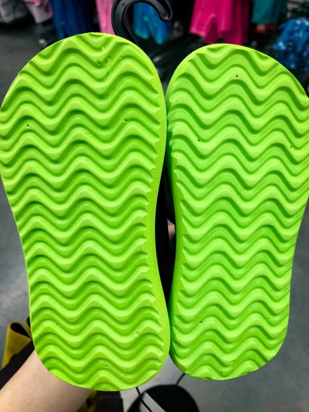 迪卡儂的兒童涼鞋款式都差不多,只是顏色和圖案的區(qū)別。團(tuán)長(zhǎng)先說說優(yōu)點(diǎn):幫面魔術(shù)貼設(shè)計(jì)方便穿脫,邊緣用布包邊很柔軟,鞋底花紋密集廣泛防滑耐磨,鞋里也有花紋防滑,鞋跟高度合適。