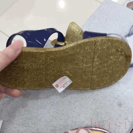 款式方面前后基本都沒有包裹,對(duì)孩子的腳保護(hù)得不算多。幫面以超纖合成革為主,裝飾物則有水鉆、蝴蝶結(jié)、亮片等有裝飾過度的感覺。某些款式鞋底較厚,材質(zhì)是PVC,大底花紋較淺防滑力不太夠的樣子。