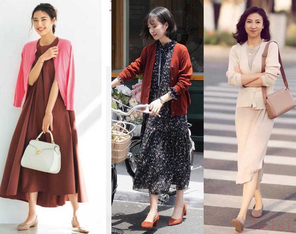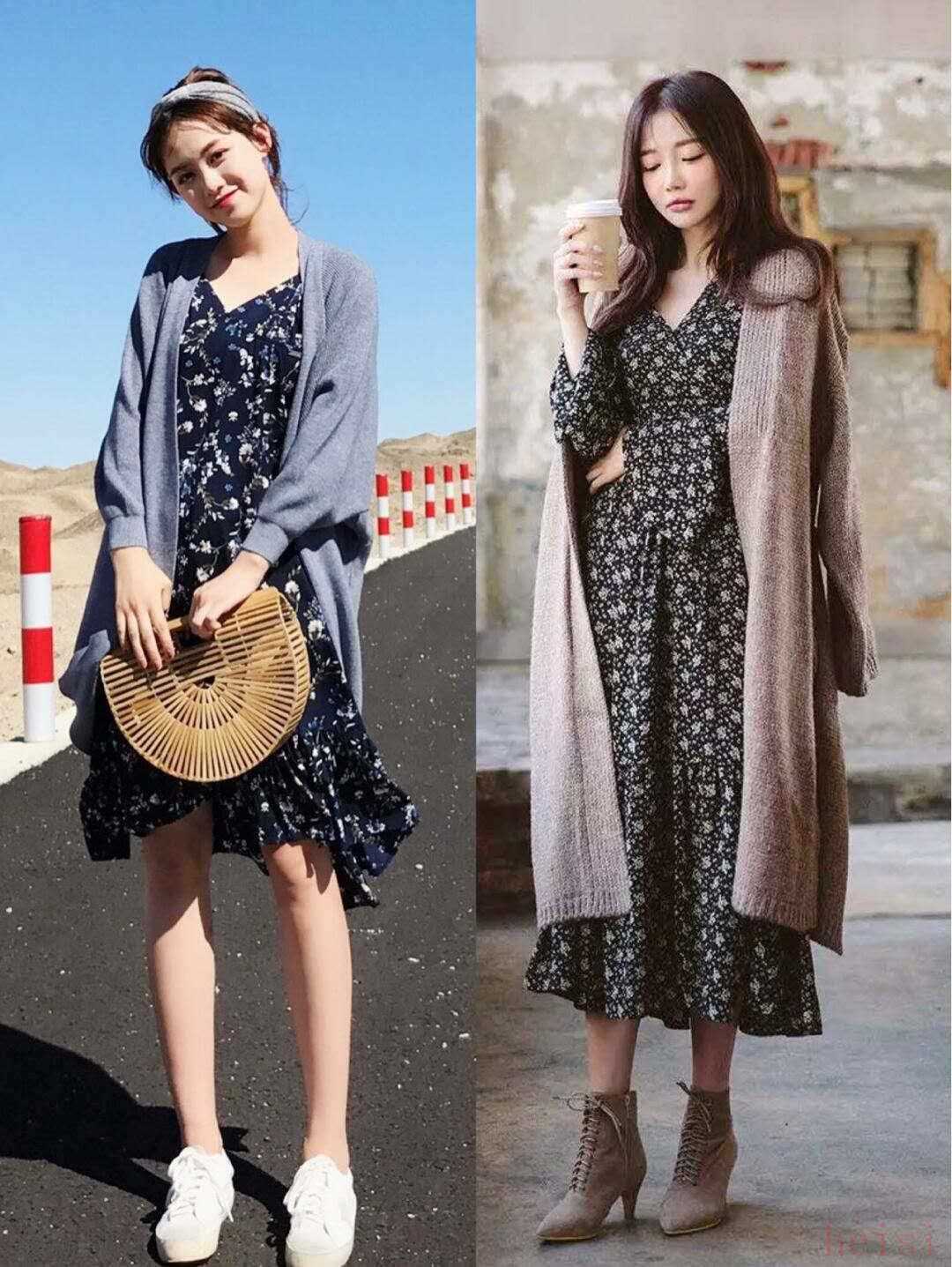追求極致的簡(jiǎn)單,沒有什么比針織衫+連衣裙來得更簡(jiǎn)單粗暴,夏季的吊帶裙、碎花裙,此時(shí)又能多穿上一季,想要穿得出彩又不失秋季色彩,建議參考彩色+秋季色,或者同色系,比如粉色+棕色,鐵銹紅+黑色,米色同色系,既有女人甜甜的味道,又迎合了秋日沉郁的色調(diào)。