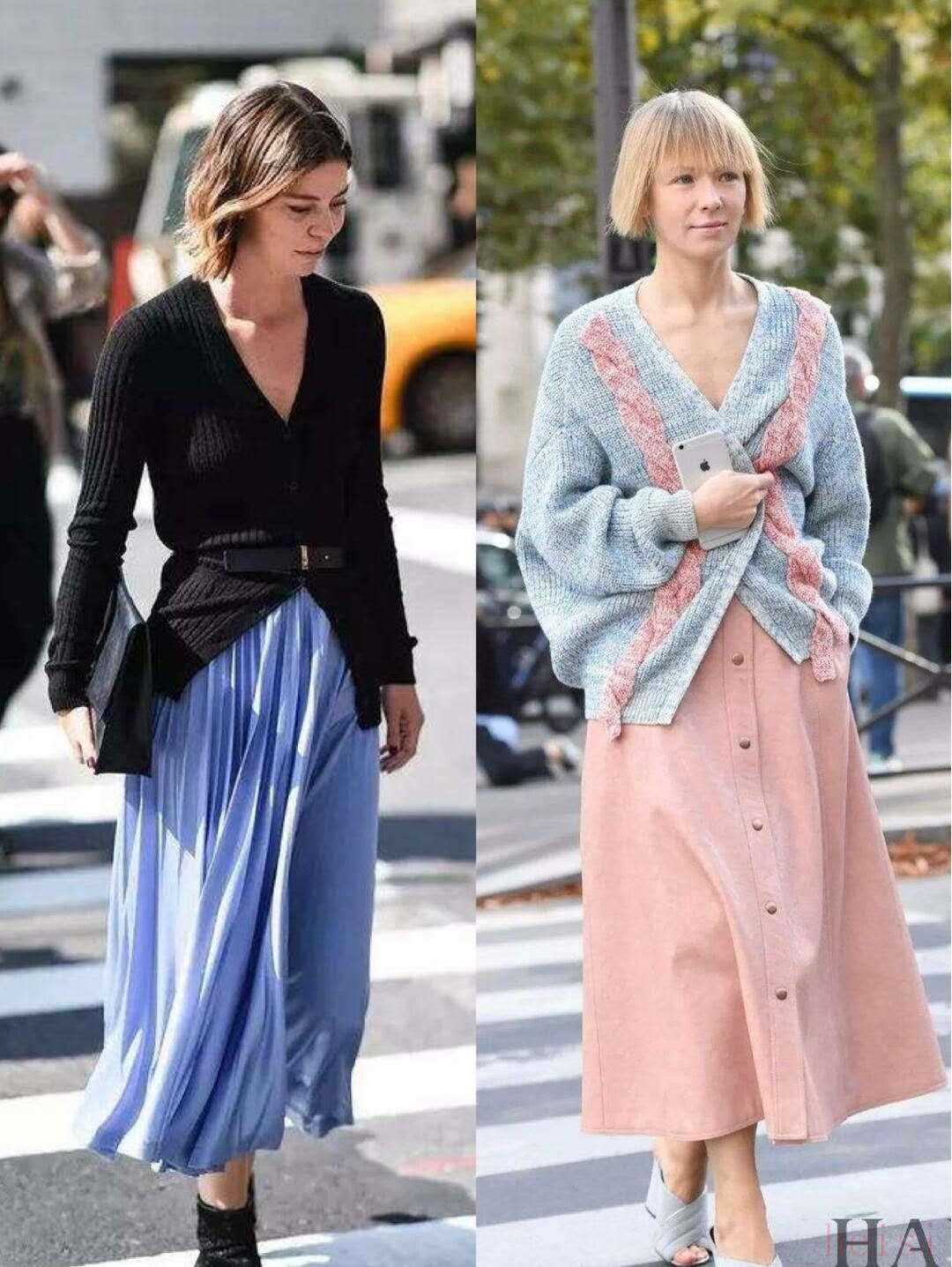 如果說最能賦予針織衫風(fēng)格感的下裝,那肯定是半身裙,半身裙品類繁多,兩個(gè)單品組合在一起總能給人意外的驚喜,網(wǎng)紗裙,清淺飄逸,像極了飄飄欲仙的小仙女;百褶裙順垂靈動(dòng),溫柔的女人也變得水靈起來;而格紋半裙,復(fù)古味道十足,讓針織衫變得輕熟灑脫。