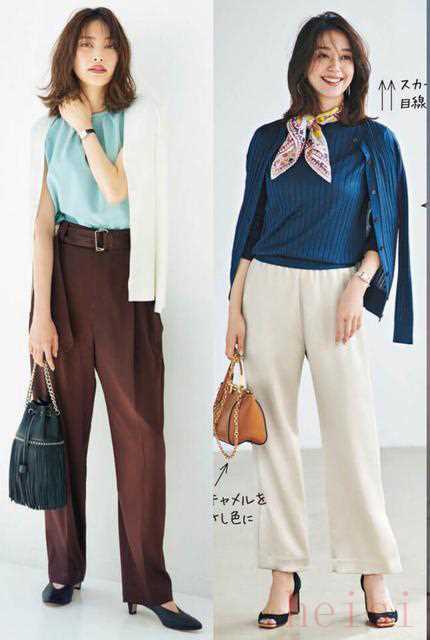 在通勤與日常休閑的任意切換中,我們可以用干練優(yōu)雅的西褲與休閑舒適兼?zhèn)涞呐W兄蓖惭潄泶钆溽樋椛?,隨性自在又不失女人味。如果想要在愜意的氛圍中呈現(xiàn)精致不俗的品味,那么就投資幾件配飾,比如絲巾、腕表、包包。