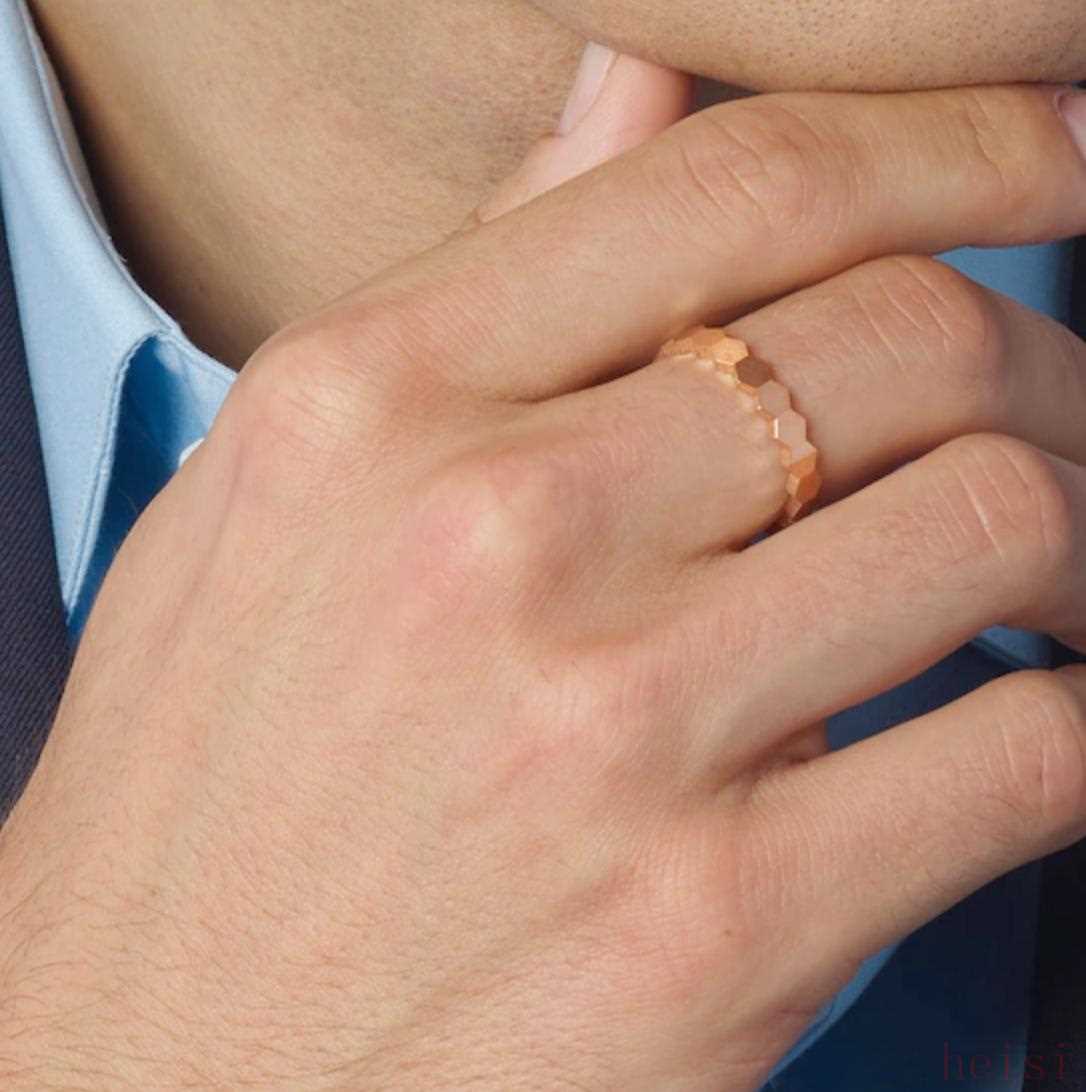 品牌以獨具匠心的視角重新詮釋蜜蜂圖案,將蜜蜂的勤勞與靈動、蜂巢的精妙與秩序巧妙融合。蜂巢造型彼此相連,如同永無止境的愛意,以綿延不斷的幾何線條勾勒出極具現(xiàn)代感的設(shè)計。