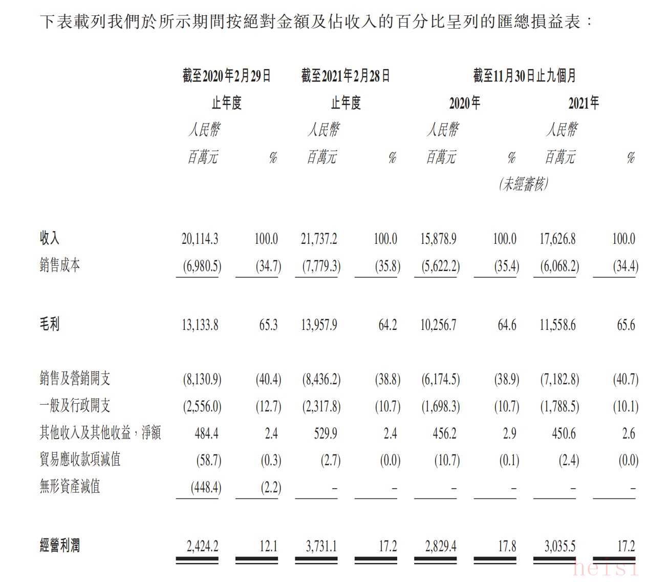 百麗時(shí)尚的業(yè)績(jī)也恢復(fù)增長(zhǎng)。截至2021年2月28日止財(cái)年,百麗時(shí)尚的收入為217億元,同比增長(zhǎng)8.1%;凈利潤(rùn)達(dá)26億元。截至2021年11月30日止九個(gè)月,百麗時(shí)尚錄得收入176億元,同比增長(zhǎng)11.0%;凈利潤(rùn)同比增長(zhǎng)17.8%至23億元。