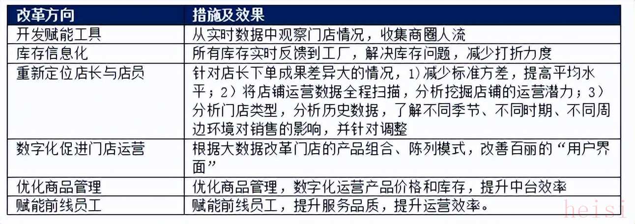 為了回本,高瓴資本開始對百麗的業(yè)務進行改造。數(shù)字化是高瓴資本帶來的最大改變,高瓴合伙人李良,作為百麗數(shù)字化轉型的牽頭人,投入了超過120名專業(yè)的數(shù)字化投后賦能團隊成員,深度參與到百麗的日常運營中。使得百麗能夠動態(tài)地洞察顧客的偏好,進而實現(xiàn)精準營銷和庫存優(yōu)化。
