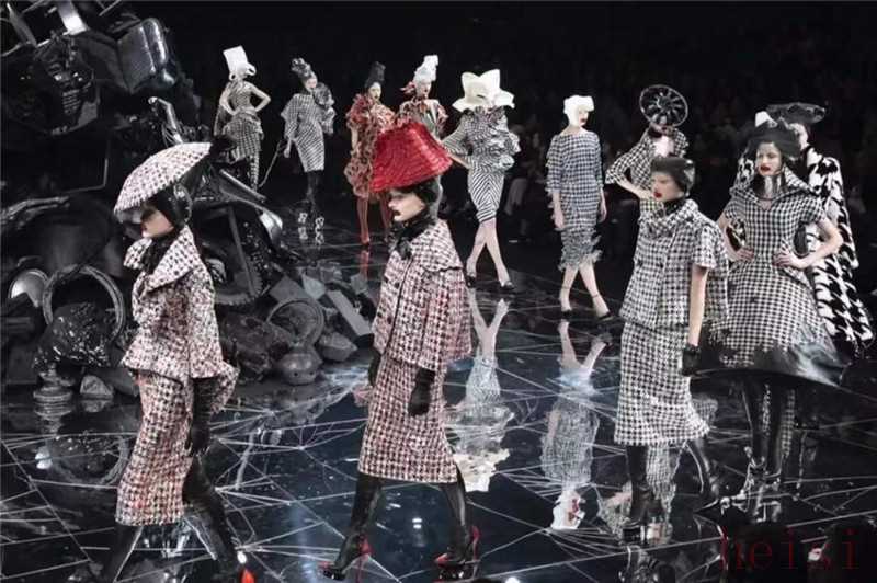 之后的大秀,麥昆又把舞臺變成一張巨大的國際象棋盤,模特在其中穿行