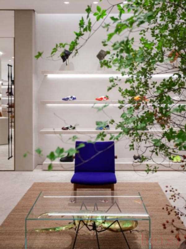 空間由創(chuàng)意總監(jiān)Jonathan Anderson提出的羅意威之家概念設(shè)計(jì),簡(jiǎn)潔明亮,充滿著現(xiàn)代感,在150平米的店鋪中,完整展現(xiàn)了羅意威包括成衣,手袋,配飾等男女裝全線產(chǎn)品之外,如藝?yán)劝愕卣钩鲈S多當(dāng)代藝術(shù)家的作品,例如Solange Pessoa的油畫作品和Lebrillos的陶瓷藝術(shù)品,以及定制的手工地毯,自然素凈氛圍的室內(nèi)設(shè)計(jì),為多樣化的藝術(shù)品創(chuàng)造出一個(gè)和諧的環(huán)境。