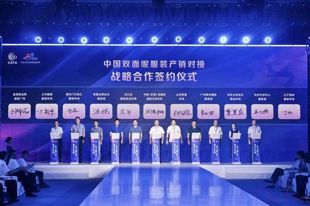 為深化各地市場(chǎng)間產(chǎn)銷(xiāo)互動(dòng)與協(xié)作,啟動(dòng)儀式現(xiàn)場(chǎng),山東即墨市場(chǎng)管委會(huì)副主任孫國(guó)強(qiáng),漢口北服裝批發(fā)市場(chǎng)、漢口北集團(tuán)總裁助理馬平,廣州錦東國(guó)際服裝城總經(jīng)理朱永賢,安徽合肥白馬服裝城總經(jīng)理汪倫,洪合眾創(chuàng)毛衫精品市場(chǎng)副總經(jīng)理董夏良,朝天門(mén)大融匯服裝市場(chǎng)副總經(jīng)理金鑫,杭州中紡中心服裝城副總經(jīng)理吳小鳴,義烏篁園服裝市場(chǎng)副總經(jīng)理丁亦峰,遼寧西柳服裝市場(chǎng)管理服務(wù)部部長(zhǎng)丁壯,金指數(shù)品牌服裝廣場(chǎng)拓展部經(jīng)理姚紅磊10位來(lái)自全國(guó)重點(diǎn)服裝專(zhuān)業(yè)市場(chǎng)代表與中國(guó)(東港)雙面呢服裝交易市場(chǎng)總經(jīng)理周裕翔簽署全國(guó)雙面呢服裝產(chǎn)銷(xiāo)對(duì)接戰(zhàn)略合作協(xié)議,雙方將積極利用各自的產(chǎn)業(yè)集群區(qū)位優(yōu)勢(shì)及資源優(yōu)勢(shì),進(jìn)一步推動(dòng)紡織服裝產(chǎn)業(yè)的蓬勃發(fā)展。