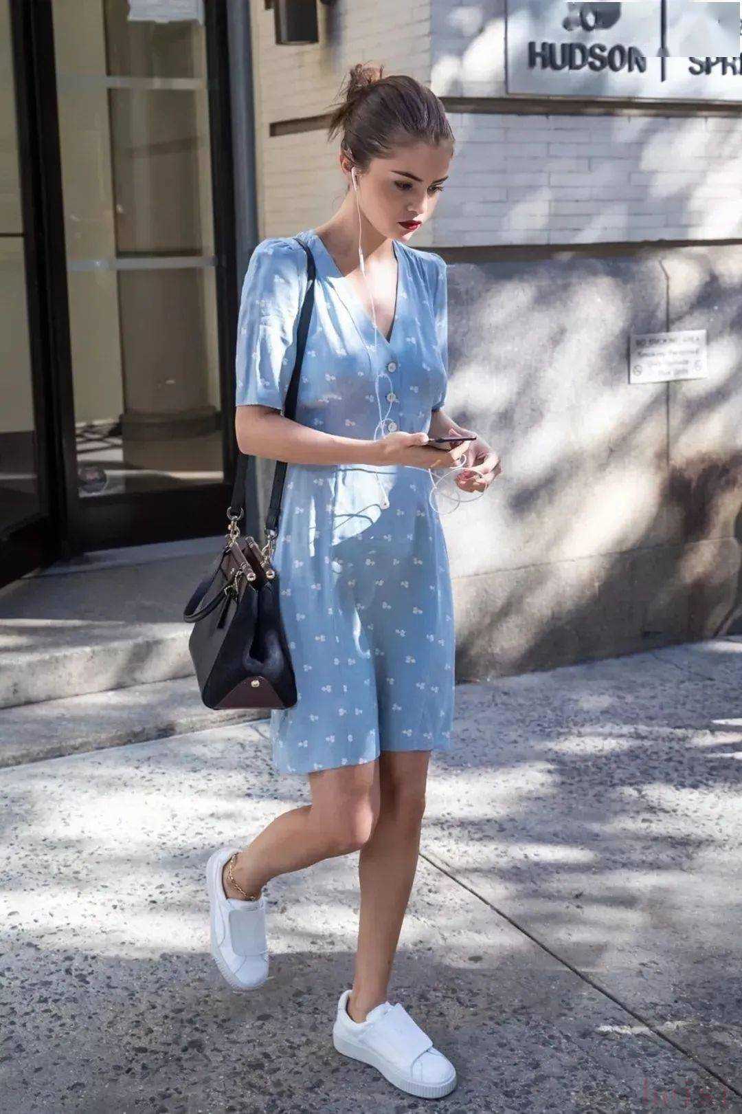 Selena Gomez小白鞋搭配正經(jīng)的西裝,反而增添了一絲隨性、親和感。▼