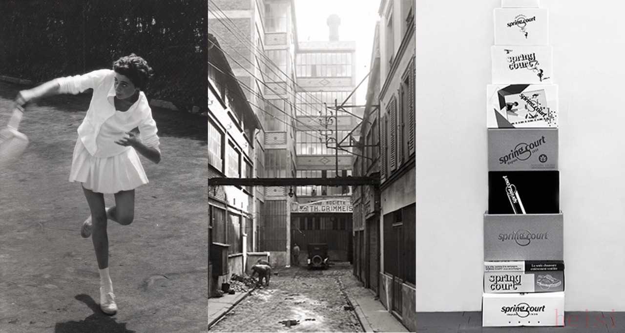 Spring Court 的工廠建立于1870年,由工程師Théodore Cooper完成,位于塞納河右岸的11e arrondissement de Paris (巴黎十一區(qū)),中間這張照片就是工廠。這雙鞋很久以前就非常出名,打網(wǎng)球的女運(yùn)動(dòng)員都很愛(ài)穿,第一張老照片,攝于1957年,是瑞典攝影師René Burri拍的,地點(diǎn)是西班牙吉普斯夸省的省會(huì)圣塞瓦斯蒂安San Sebastián。▼