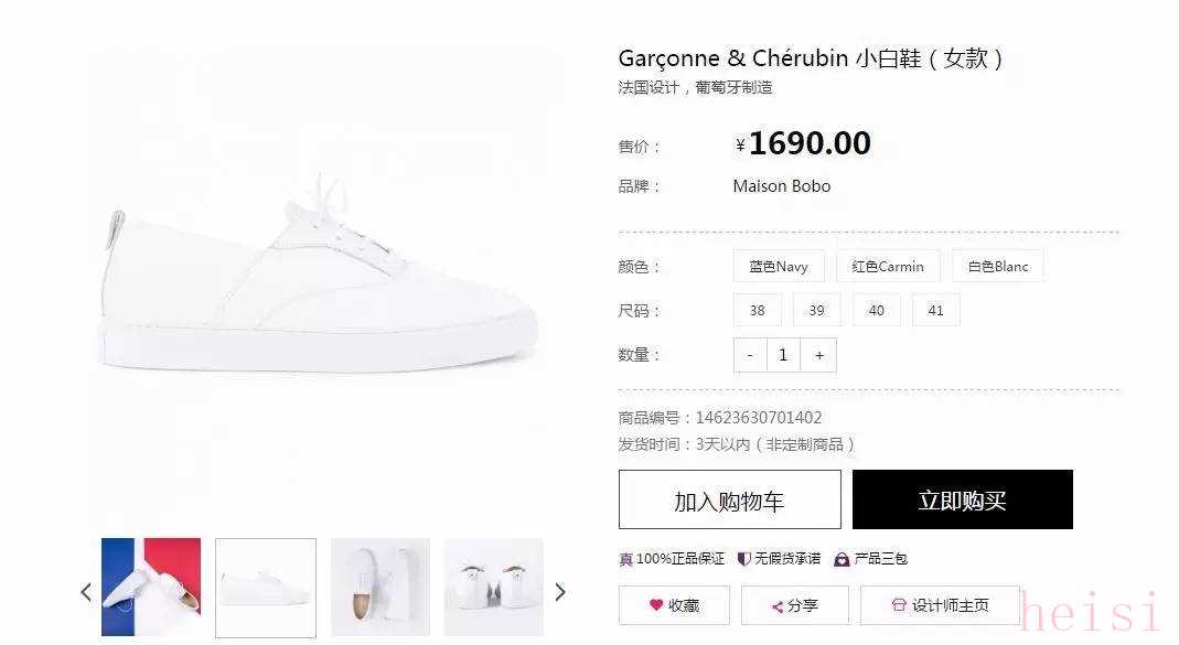 國(guó)內(nèi)最方便的購(gòu)買渠道大概就是在界面旗下的電商尤物了。這個(gè)網(wǎng)站可以稱得上是中國(guó)最大的本土原創(chuàng)設(shè)計(jì)師聚集地,但除了設(shè)計(jì)師品牌之外,也會(huì)售賣其他的外國(guó)品牌,一般都是以買手店進(jìn)駐的形式出售,線上線下結(jié)合,這雙鞋就出自法國(guó)原創(chuàng)精品集成店Maison Bobo。價(jià)格方面,160歐折算過(guò)來(lái)大概就是1185軟妹幣,相差五百塊,如果嫌麻煩不想找代購(gòu),這是最便捷的選擇。遺憾的是碼數(shù)比較少,女款最小碼是38。▼