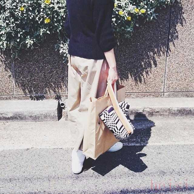 要么就是一件素色上衣加挽褲腳的原色牛仔褲,再拎一個(gè)大大的手提袋。▼