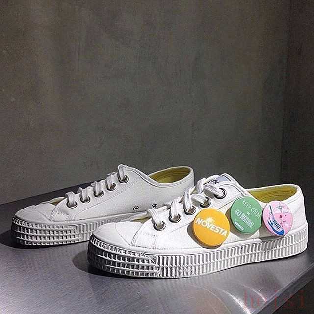 有留心剛剛的照片應(yīng)該會(huì)發(fā)現(xiàn),Novesta白鞋子的標(biāo)志就是:內(nèi)里是亮黃色的。喔對(duì)了,高幫比低幫便宜些,但低幫確實(shí)更好看也更好搭衣服。這兩雙碼數(shù)齊全,從最小碼到最大碼都有,還有一雙碼數(shù)都是40+的男鞋碼,就不放了▼