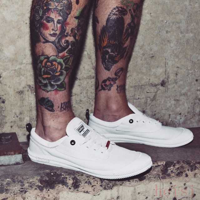 來(lái)兩張?zhí)貙?xiě)。要是你小腿上的紋身已經(jīng)足夠浮夸了,鞋子太酷炫難免會(huì)扎眼,而且,圖案,色彩方面不搭調(diào)也會(huì)格格不入,還不如直接穿一雙簡(jiǎn)單的白鞋子,它既不會(huì)蓋過(guò)紋身的風(fēng)采,又能夠成為難易忽略的獨(dú)特存在~