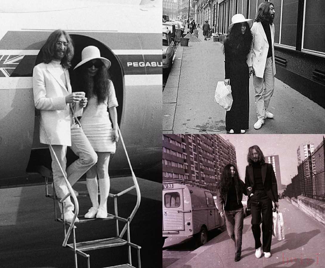 成員之一John Lennon(已故)和他的妻子Yoko Ono(小野洋子) 倆人都 喜歡穿Spring Court 家的白鞋子,私底下的打扮基本都差不多,西裝長(zhǎng)褲配高領(lǐng)衫,加一雙小白。▼