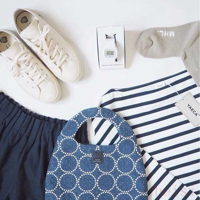 要說(shuō)跟這種白布鞋最登對(duì)的單品,應(yīng)該是中學(xué)校服,但現(xiàn)在已經(jīng)用不上了,所以緊跟其后的就是基礎(chǔ)款單品,比如說(shuō)條紋tee。▼