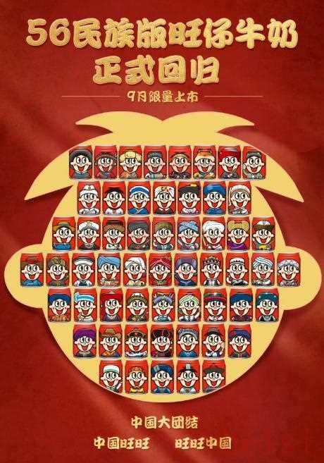 不過,旺仔成為“頂流”還應該歸功于品牌在它身上有效地放大了旺旺集團的愛國情懷。2019年,為了慶祝中國70周年國慶,旺旺集團推出了身穿56個民族服飾的旺仔牛奶罐,借鑒了潮玩盲盒的玩法,在線隨機購買,既做了營銷話題,又提升了收藏性。這是旺仔最出圈的IP高光時刻之一,這個系列也因為深受消費者歡迎而多次回歸。