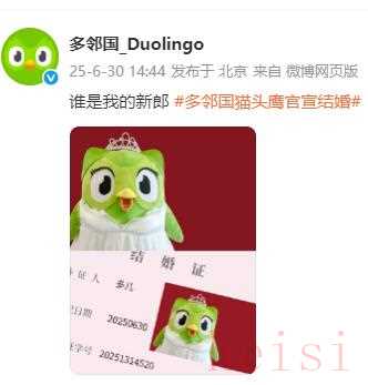 一場“婚禮”攪動半個品牌圈6月30日,多鄰國在微博、小紅書、抖音等社交媒體平臺宣布:吉祥物多兒將在7月結(jié)婚!但并未透露結(jié)婚對象,只拋出一張單人結(jié)婚證內(nèi)頁,讓大家自行腦補。